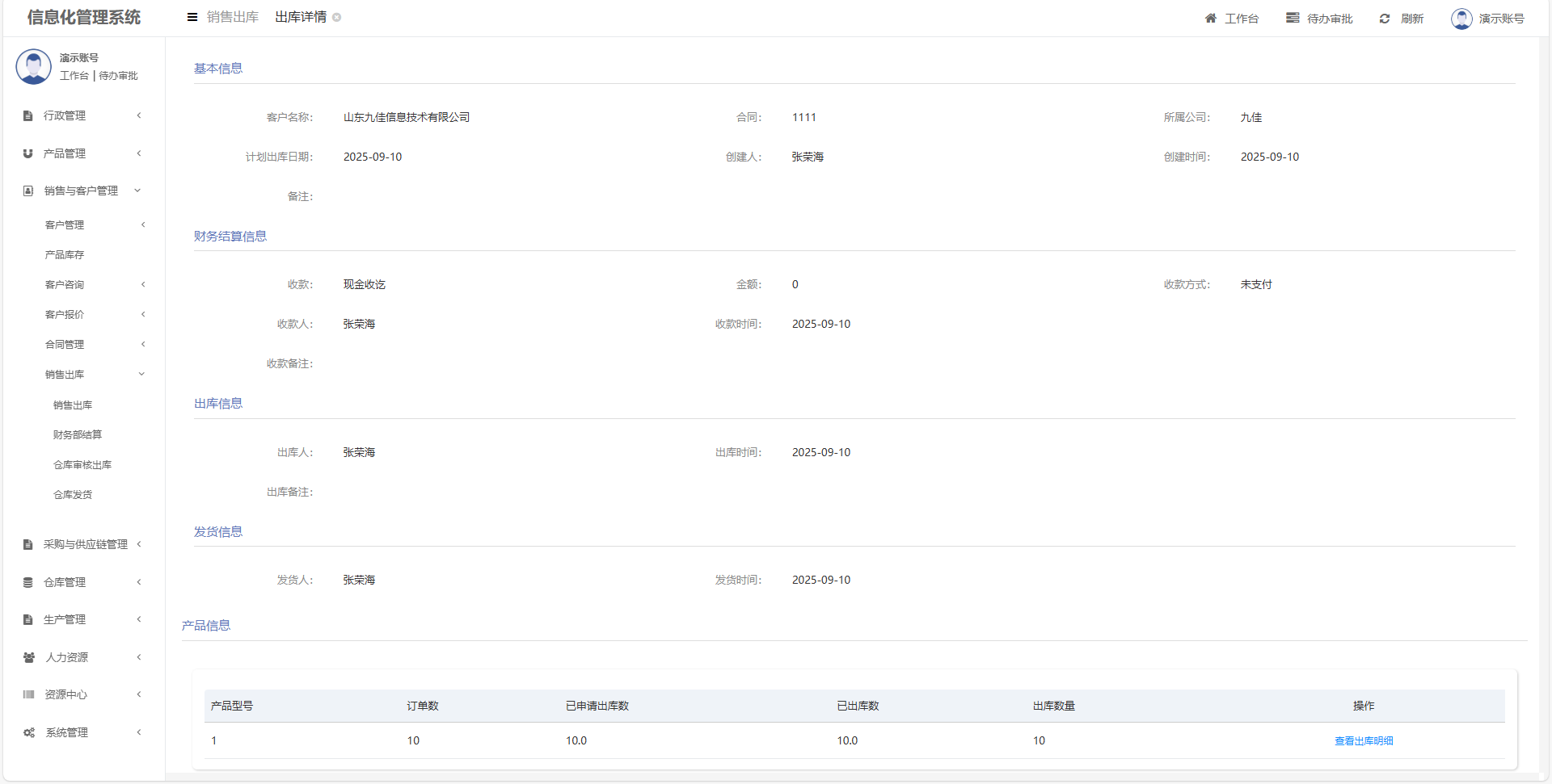 客户经理提报发货申请;财务部核实客户付款信息;仓库发货记录;运输方式到达记录。
