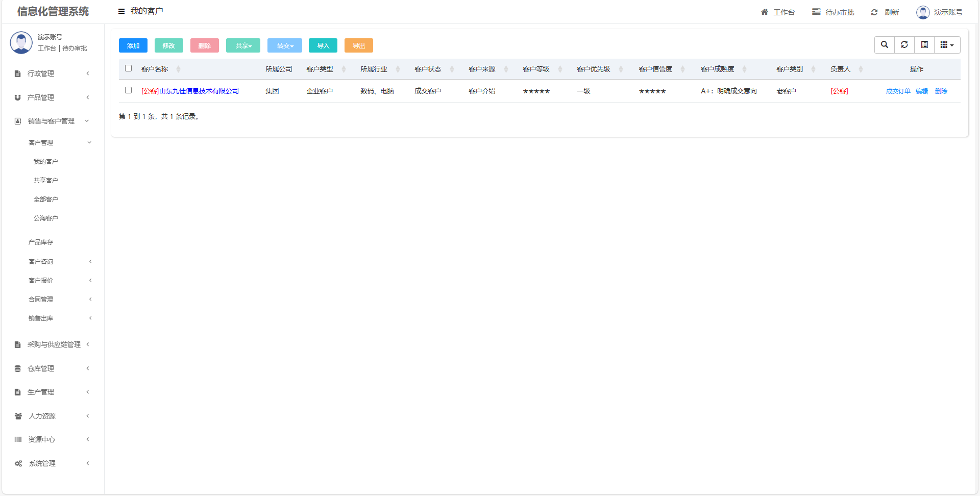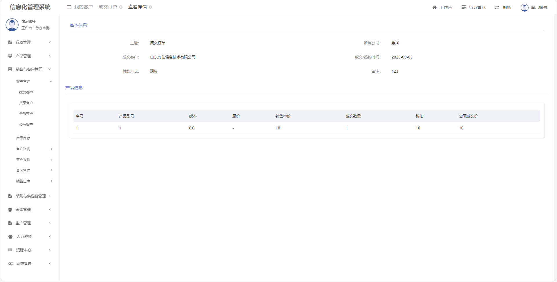记录客户成交订单信息,后续跟进成交订单发货情况、回款情况、发票开具情况和售后服务情况。