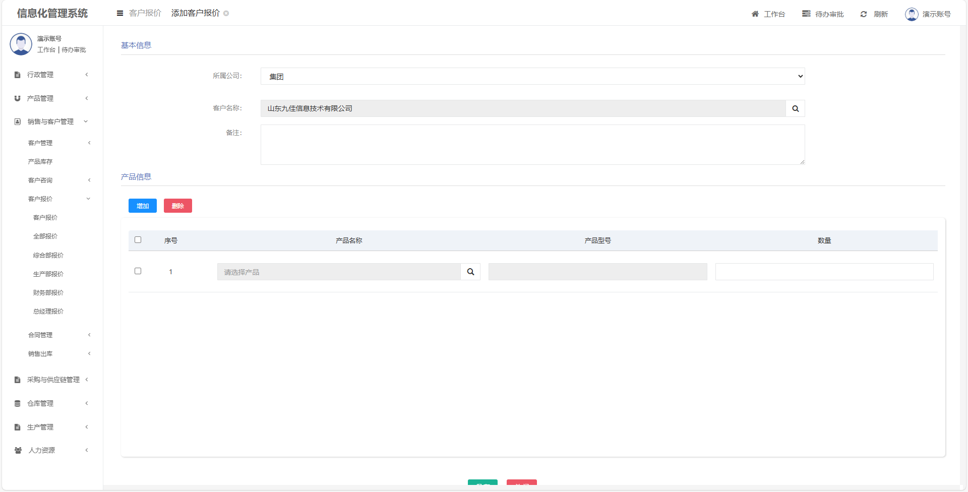 客户经理根据客户需求发起报价申请,经过技术、生产、财务等相关部门核算成本,决策者审批后对客户进行报价。