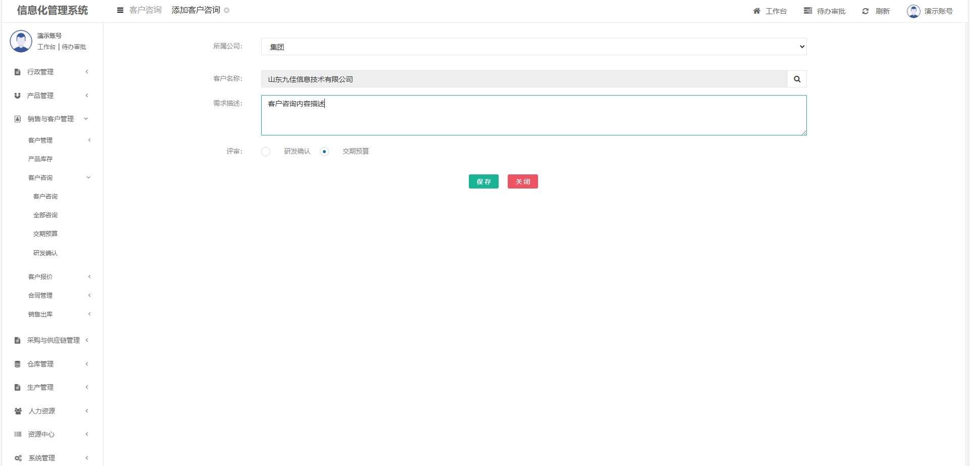客户经理及时记录客户咨询信息,按照系统流程由研发部门、生产部门研判是否能实现客户提出的需求和实现时限,闭环管理客户需求,实现客户需求专业化精细化管理。