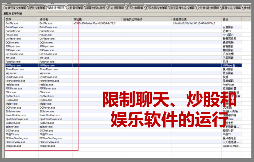 过滤或限制与工作无关的应用程序或控制公司内部判定为非法的程序的启动。