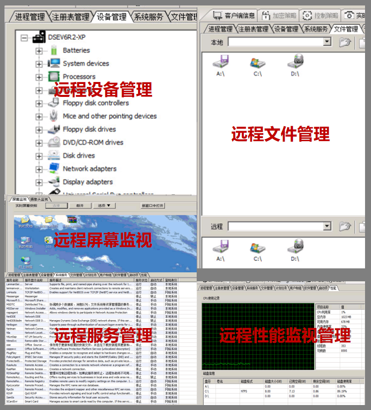 IT运维部为了工作的需要,远程到对方电脑进行技术支持、远程文件的上传和下载、远程维护电脑等。通过远程进程管理、文件管理、资源管理和注册表以及服务管理等功能进行终端控制,解决无法及时到现场的问题。